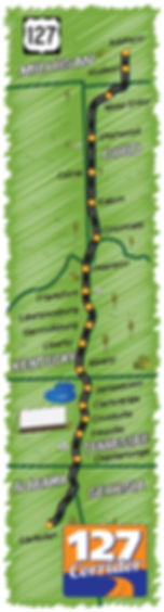What am I doing today? This morning I started planning for a visit to the 127 sale, also know as the World's Longest Yard Sale. For the uninitiated, the 127 sale is 690 miles of yard sales, antique dealers, junk dealers, fantastic food vendors, amazing scenery and just all around fun. The sale extends through six states: Michigan, Ohio, Kentucky, Tennessee, Georgia and Alabama. The map below is from www.127sale.com.