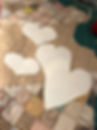 I cut several patterns out of paper, just like we did in elementary school, folding paper in half and freehand cutting hearts.