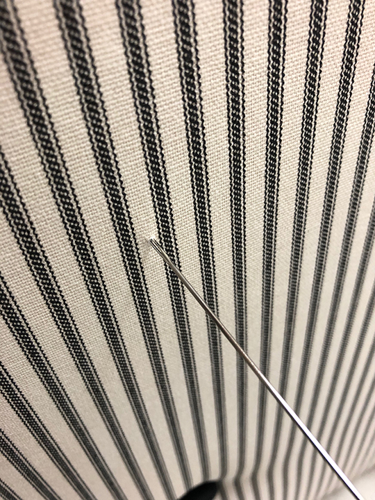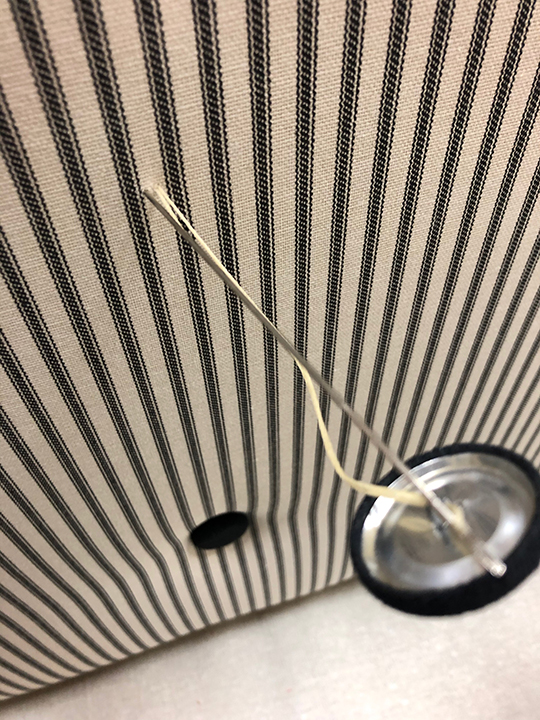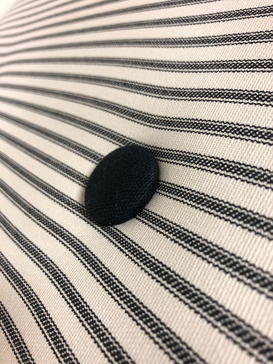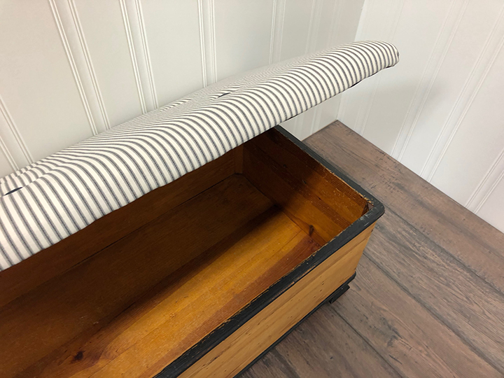 I selected a black and cream ticking canvas for the fabric on the lid.