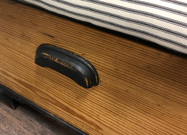 We distressed the black paint and gave it a coat of Varathane Crystal Clear Satin polyurethane.