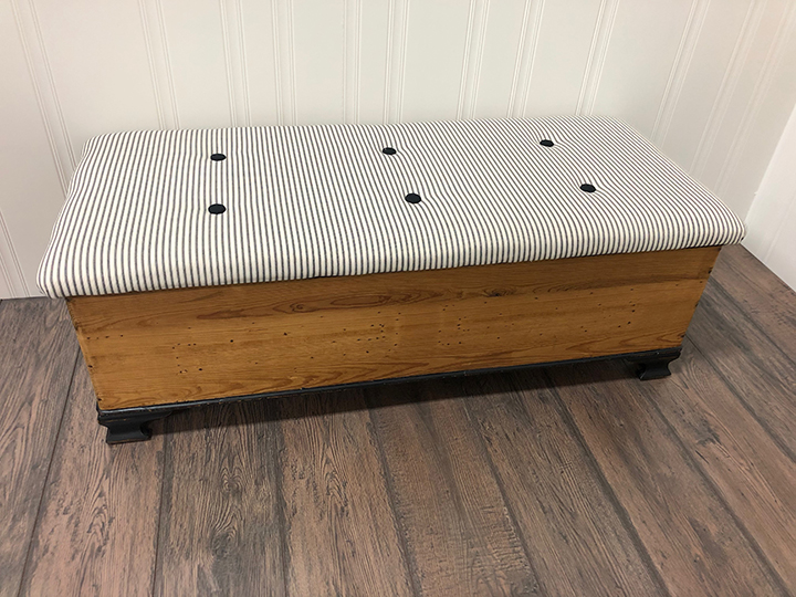 My plan was to remove the grasscloth, paint it, and reupholster the lid.