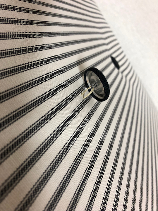 I wanted to add tufted buttons to the lid and wanted to have a contrasting fabric. You can buy button covers from any big box store or craft store.