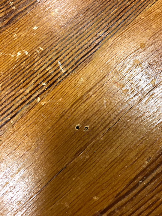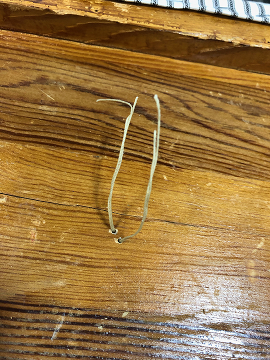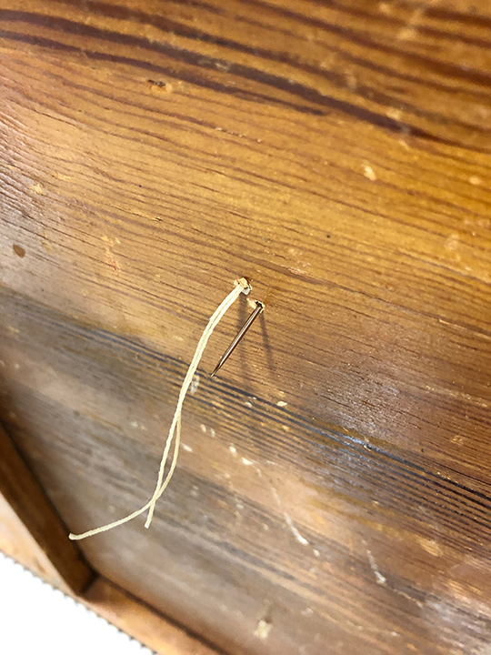 Before we tackled the glue removal, we detached the lid of the chest and set it aside to reupholster.